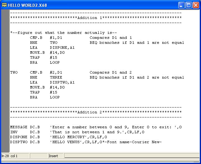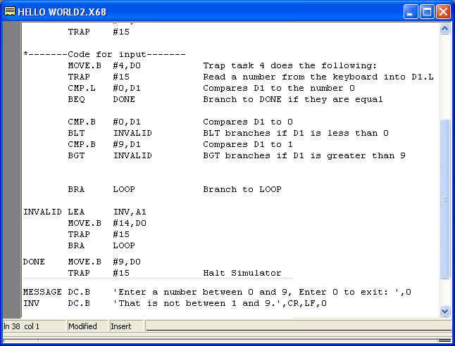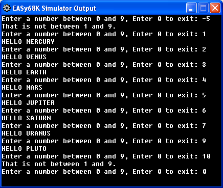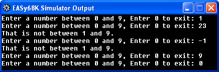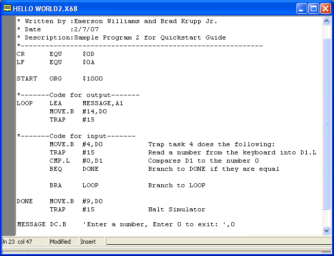This concludes Part 2 of the tutorial. You should now be able to use EASy68K to write, assemble, and run a simple program. |